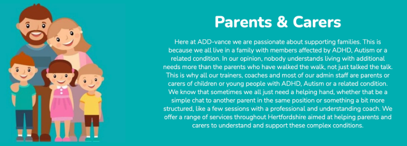 ADD-vance – A Hertfordshire based charity that supports parents and carers with children who have a diagnosis of, or traits of ADHD, Autism or related conditions.